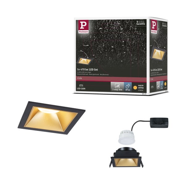 LED Einbauleuchte 3-Step-Dim Cole Coin 1er-Set IP44 eckig 88x88mm Coin 6W 470lm 230V dimmbar 2700K Schwarz, Gold matt