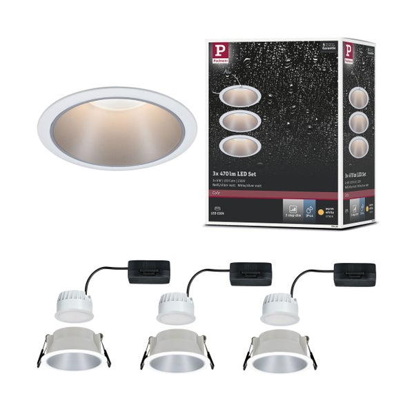 LED Einbauleuchte 3-Step-Dim Cole Coin 3er-Set IP44 rund 88mm Coin 3x6W 3x470lm 230V dimmbar 2700K Weiß, Silber matt