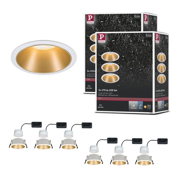 LED Einbauleuchte 3-Step-Dim Cole Coin 6er-Set IP44 rund 88mm Coin 6x6W 6x460lm 230V dimmbar 2700K Weiß, Gold matt