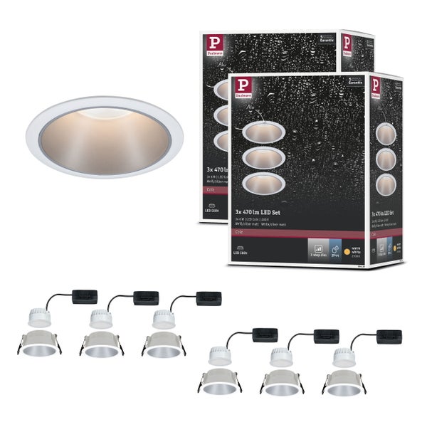 LED Einbauleuchte 3-Step-Dim Cole Coin 6er-Set IP44 rund 88mm Coin 6x6W 6x470lm 230V dimmbar 2700K Weiß, Silber matt