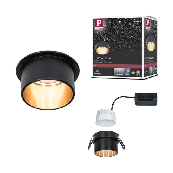 LED Einbauleuchte 3-Step-Dim Gil Coin IP44 rund 68mm Coin 6W 470lm 230V dimmbar 2700K Schwarz matt, Gold