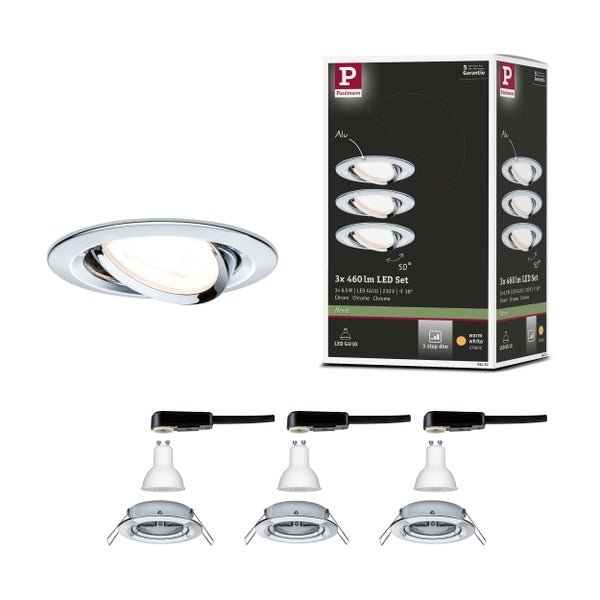 LED Einbauleuchte 3-Step-Dim Nova Basisset schwenkbar rund 84mm 50° GU10 3x6,5W 3x460lm 230V dimmbar 2700K Chrom