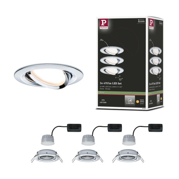 LED Einbauleuchte 3-Step-Dim Nova Coin 3-Step-Dim Basisset schwenkbar rund 84mm 50° Coin 3x6W 3x470lm 230V dimmbar 2700K Chrom