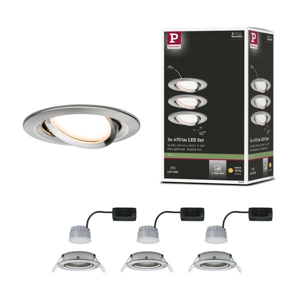 LED Einbauleuchte 3-Step-Dim Nova Coin 3-Step-Dim Basisset schwenkbar rund 84mm 50° Coin 3x6W 3x470lm 230V dimmbar 2700K Eisen gebürstet