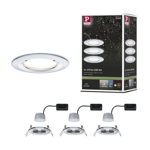 LED Einbauleuchte 3-Step-Dim Nova Coin Basisset starr IP44 rund 78mm Coin 3x6W 3x470lm 230V dimmbar 2700K Chrom