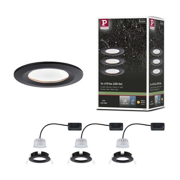 LED Einbauleuchte 3-Step-Dim Nova Coin Basisset starr IP44 rund 78mm Coin 3x6W 3x470lm 230V dimmbar 2700K Schwarz matt