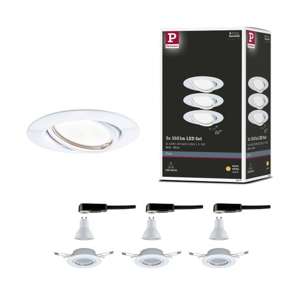 LED Einbauleuchte Base Basisset schwenkbar rund 90 mm 20° GU10 3x5W 3x350lm 230V 3000K Weiß