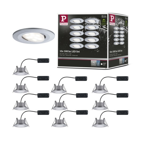 LED Einbauleuchte Calla Basisset schwenkbar IP65 rund 90mm 30° 10x5,2W 10x460lm 230V dimmbar 4000K Chrom matt