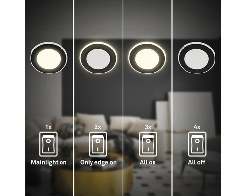 LED Einbauleuchte IP20 3-step dimmbar starr 4,9 W 3000 K 425 lm Ø 9,3/6,8 cm schwarz mit Nachtlichtring 230V