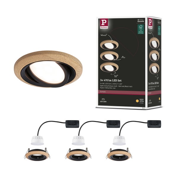 LED Einbauleuchte Lanati 3er-Set rund 84mm 30° Coin 3x6W 3x470lm 230V 2700K Farbton Eiche geölt, Schwarz matt