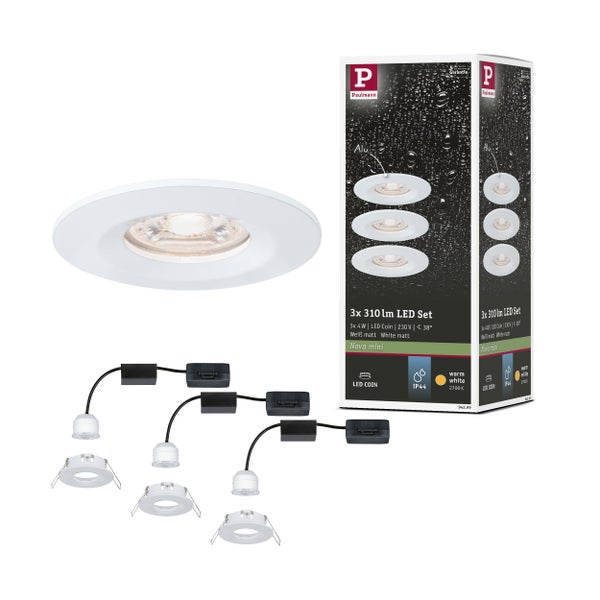 LED Einbauleuchte Nova Mini Coin Basisset starr IP44 rund 65mm Coin 3x4W 3x310lm 230V 2700K Weiß matt