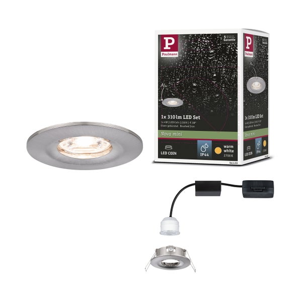 LED Einbauleuchte Nova Mini Coin Einzelleuchte starr IP44 rund 65mm Coin 4W 310lm 230V 2700K Eisen gebürstet