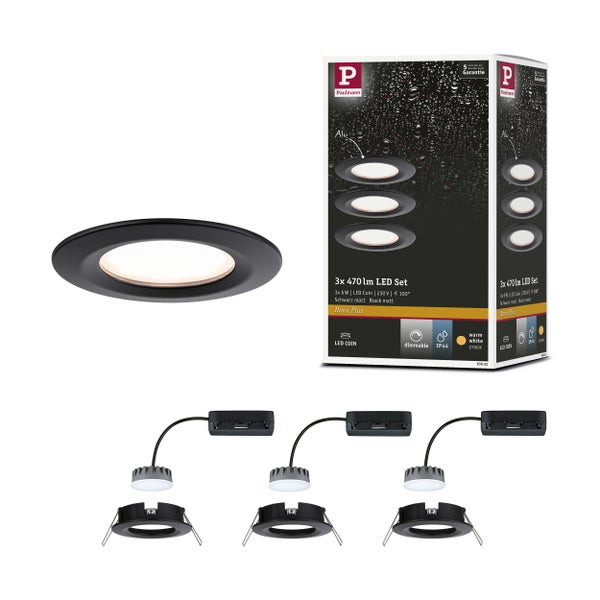 LED Einbauleuchte Nova Plus Coin Basisset starr IP44 rund 78mm Coin 3x6W 3x470lm 230V dimmbar 2700K Schwarz matt