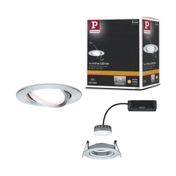 LED Einbauleuchte Nova Plus Coin Einzelleuchte schwenkbar rund 84mm 50° Coin 6W 470lm 230V dimmbar 2700K Alu gedreht