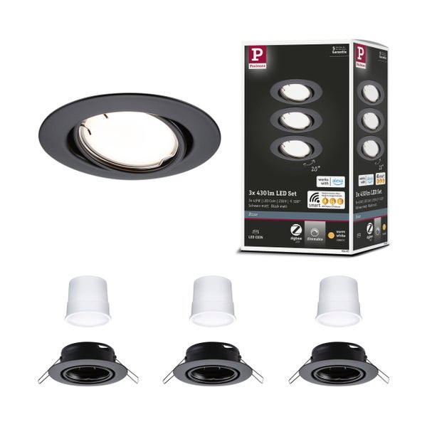 LED Einbauleuchte Smart Home Zigbee 3.0 Base Coin Basisset schwenkbar rund 90mm 20° Coin 3x4,9W 3x430lm 230V dimmbar 3000K Schwarz matt