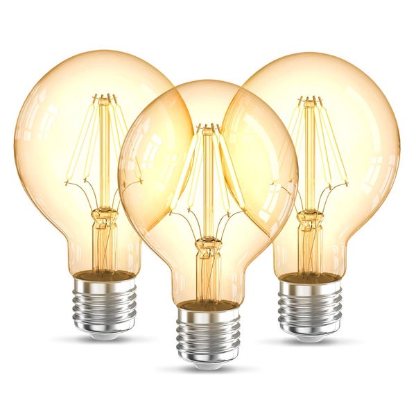 - Dekorativ: Sie erhalten dieses dekorative Leuchtmittel im praktischen 3er Set. Das dezent in Bernstein gefärbte Glas verstärkt den Retro-Look und erzeugt eine gemütliche, entspannte Atmosphäre.