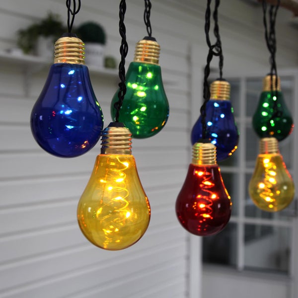 - Die Lichterkette besteht aus 10 klassischen LED Glühbirnen in verschiedenen Farben an einem 3,6 Meter langem Kabel