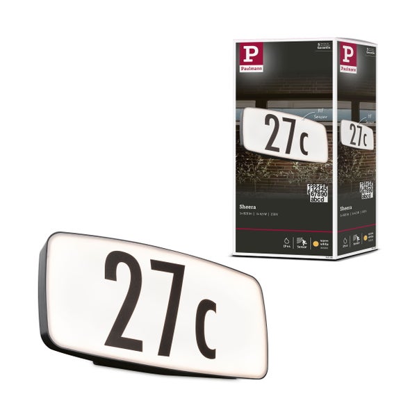 LED Hausnummernleuchte Sheera Dämmerungssensor Dämmerungsgesteuerter Bewegungsmelder (HF) seewasserresistent IP44 276x128mm 3000K 6,5W 460lm 230V Anthrazit Kunststoff
