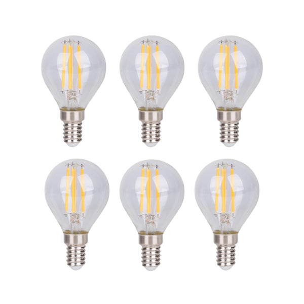 LED Leuchtmittel DAFFY 6er Set - Leuchtmittel für Leuchten mit E14-Sockel Setzen Sie auf hochwertige Leuchtmittel für eine optimale Beleuchtung. Unsere Produkte zeichnen sich durch höchste Qualität und eine lange Lebensdauer aus. Zudem sparen Sie dabei auch noch Energie. Ein Leuchtmittel im Industrial Style, mit XXX Design, das nicht nur dekorativ und gut aussieht, sondern auch zuverlässig und langlebig ist. Das Leuchtmittel besteht aus Metall und Glas und ist in Klar/transparent erhältlich. Der Artikel hat eine Abmessung von 4,5 cm x 4,5 cm x 7,8 cm. Dieses Leuchtmittel ist für E14-Fassungen passend und sorgt mit 6 effizienten LEDs für eine helle und energieeffiziente Beleuchtung. Das Leuchtmittel lässt sich dimmen. Dieses Leuchtmittel bietet Ihnen mit einer Gesamtleistung von 24 Watt Licht mit einer Helligkeit von 2400 Lumen. Das Licht hat eine Lichtfarbe von 2700 Kelvin. Das Produkt verfügt über die Schutzart IP20.