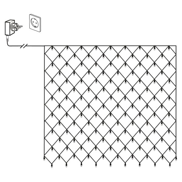 - LED Lichterkette bestehend aus einem schwarzen Netz aus Kabeln mit insgesamt 200 LEDs (3,1 Watt)