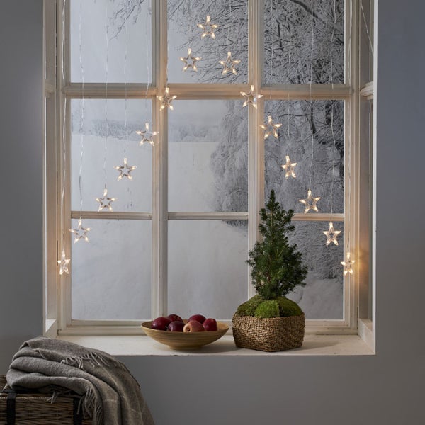 LED Lichtervorhang ,Decystar' mit 15 Leuchtsternen, 75 warmweiße Lichtquellen, Timer, transparent, B 125cm, H 120cm