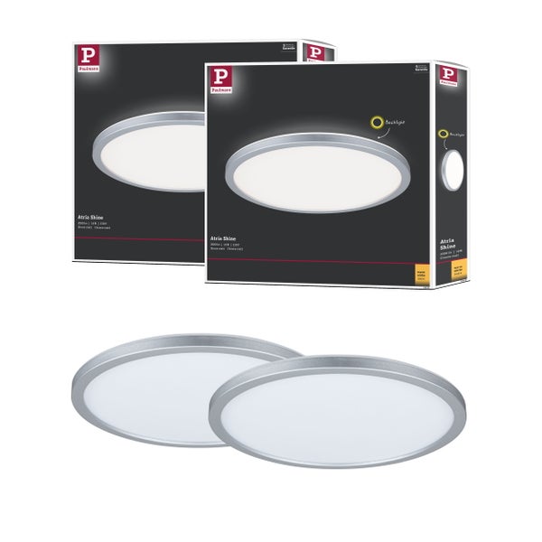 Moderne LED-Technik ermöglicht bei den runden Abia Paneln (2er-Set) in Chrom matt eine Kombination von sehr flachem Aufbau und hervorragend gleichmäßiger Lichtverteilung. Die unaufdringliche Gestaltung und klare Linienführung harmonieren mit wohnlich-modernen Stilen sowie architekturbetontem Ambiente.