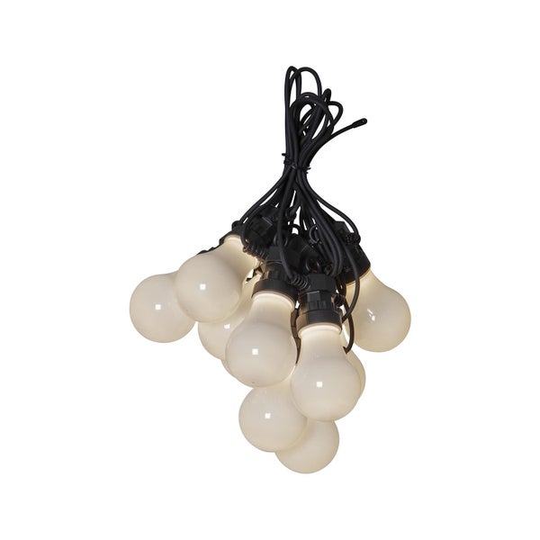 - Die Lichterkette besteht aus 10 opalen LED Glühbirnen an einem 4,05 Meter langen Kabel