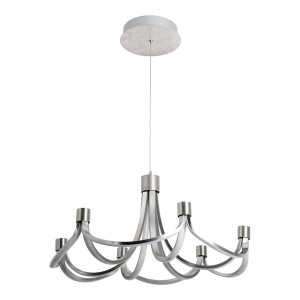 Die Pendelleuchte unserer Kollektion FESTOS - Ein Highlight für Ihr Zuhause Mit Pendelleuchten erhalten Sie eine direkte und gezielte Beleuchtung, die optimal für die Beleuchtung von Esstischen, Kücheninseln, Arbeitsbereichen oder anderen Bereichen geeignet ist, die eine konzentrierte Lichtquelle benötigen. Sie akzentuieren bestimmte Zonen und schaffen eine klare Lichtquelle für alltägliche Aufgaben. Modern Style, geschwungene Gestaltung und eine edle Optik, ideal für alle, die es edel und hochwertig mögen! Die Leuchte ist aus Metall und Kunststoff gefertigt und in nickelmatt gehalten. Die Verbindung aus mattiertem Gestell und dem mattierten Schirm ergibt ein ästhetisches Gesamtbild. Die Pendelleuchte misst 55 cm in der Länge, 55 cm in der Breite/Tiefe und 150 cm in der Höhe. Die Leuchte hat also einen Durchmesser von 55 cm. Das Pendel ist insgesamt 150 cm lang. Mit einer Pendelleuchte ausgestattet mit 540 LED auf 12 LED Platine bringen Sie Licht ins Dunkel. Bei diesem Design ist die Beleuchtung komplett integriert. Diese Leuchte entspricht der Klasse 2. Für den Netzbetrieb dieses Geräts wird eine Netzspannung von 220-240V ~ 50Hz benötigt. Die 35 Watt starke Leuchte hat eine Lichtstärke von 3541 Lumen und eine Lichttemperatur von 3000 Kelvin. Mit dieser Leuchte können Sie die Helligkeit individuell anpassen und somit immer das passende Licht für jede Situation schaffen. Bringen Sie mit unsere erstklassige Pendelleuchte ein angenehmes und einladendes Flair in Ihre Räume und erleben Sie Beleuchtung in ihrer schönsten Form.