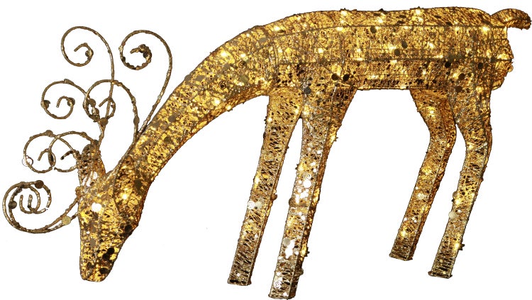 - LED Weihnachts-Hirsch für den Garten bestehend aus Draht mit goldenen Pailletten und einer Kunststoff-Lichterkette mit 96 LEDs
