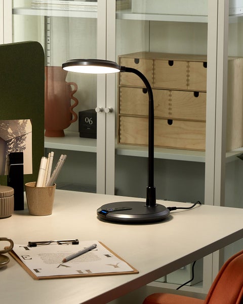 Dimmbare LED-Leuchte für den Schreibtisch mit verstellbarem Arm. Perfekt für die Arbeit am Computer, zum Lesen oder Schreiben, bietet diese LED-Tischlampe ein sanftes Licht, das jede Tätigkeit erleichtert. Der runde Lampenschirm leuchtet einen großen Bereich aus, während der biegsame Arm es Ihnen ermöglicht, das Licht in jede Richtung zu lenken. Die Lampe wird durch Berührung gesteuert und verfügt über eine Dimmfunktion sowie eine Funktion zur Änderung der Farbtemperatur. Details: Typ Büroleuchten. Farbe: Schwarz. Lichtfarbe: Warmweiß. Material: Metall. Material: Kunststoff. Zusätzliches Material: Silikon. Material Lampenfuss: Metall. Material Lampenschirm: Metall. Verstellbar: Lampenschirm. Fassung: 7 W. Finish: Gebürstet. Schutzklasse: IP 20. Lichtstrom: 465/720/380. LED Typ: SMD 2835. LED: Ja. Anzahl der Glühbirnen: 1. Spannung 230 V (50 Hz). Abmessungen: Fuß: 19x19. Kabellänge: 130 cm. Tiefe: 19 cm. Breite: 19 cm. Höhe: 43 cm. Gewicht: 1 kg. .Sie kaufen: 1 x Tischleuchte. Produktvorteile: Helligkeitsregulierung, Touch Sensor-Schalter, Hervorragend geeignet als Direktbeleuchtung, Verstellbarer Arm, Modernes Design, Das LED-Licht verfügt über 3 Farbtemperaturmodi. Montage: Benötigt keine Montage. Zusatzinformationen: Die Stromkabel dürfen nur von einem qualifizierten Elektriker angepasst werden. Pflegeanleitung: Metall: 1.Bitte ausschließlich handelsübliche, milde Reinigungsmittel und weiche Tücher verwenden, wobei feuchte Stellen sofort trocken gerieben werden sollten. 2.Vermeiden Sie scheuernde Reiniger, da diese die Oberfläche beschädigen können. 3.Bei Chrom und Kupfer regelmäßig mit speziellen Pflegemitteln polieren.