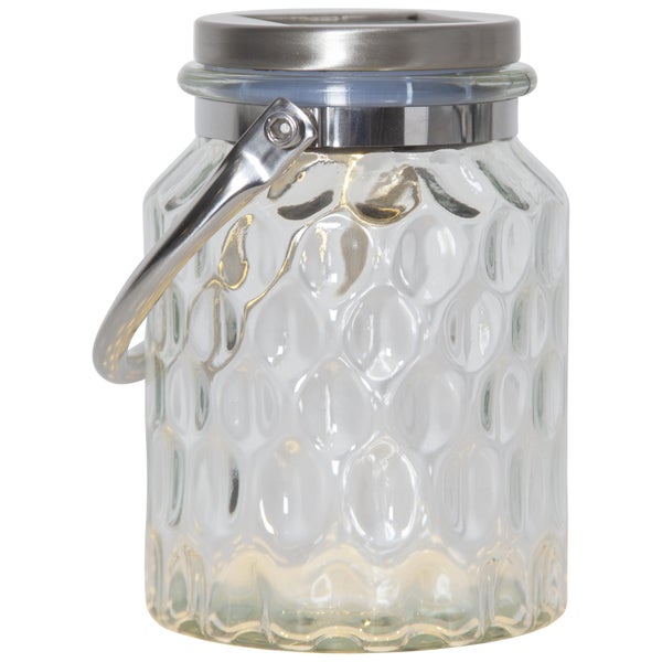 - Die Solar Laterne besteht aus Glas in einer schönen Blasen-Optik und einer Edelstahl-Abdeckung mit Griff