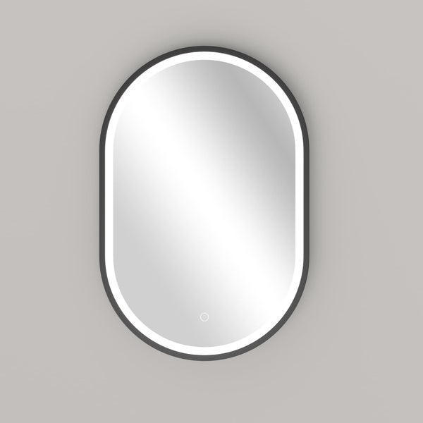 LED Spiegel Oval Spiegelheizung 40x60 oder 55x100 Schwarz Matt Warm-/Kaltlichteinstellung Badspiegel