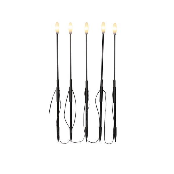 - Die LED Spießleuchten bestehen aus 5 Leuchtstäben, welche mit einem Stromkabel in 50 cm Abständen verbunden sind