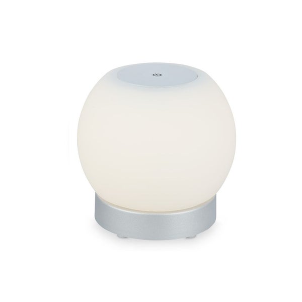 Chrom-Matte LED Akku-Tischlampe mit Touch-Dimmfunktion Diese tragbare LED Akku-Tischlampe in Chrom-Matt vereint modernes Design mit praktischen Funktionen. Mit einer warmweißen Farbtemperatur von 3300 Kelvin schafft sie eine gemütliche Atmosphäre und passt sich flexibel an unterschiedliche Beleuchtungsbedürfnisse an. Individuell dimmbare Helligkeit mit Touch-Funktion Die Lampe verfügt über eine praktische Touch-Funktion, mit der Sie die Helligkeit in drei Stufen einstellen können. Durch einfaches Berühren können Sie die Lichtintensität je nach Bedarf anpassen. Integrierter Akku für kabellose Flexibilität Der eingebaute Akku bietet im vollständig aufgeladenen Zustand eine Laufzeit von bis zu 5 Stunden. Die Lampe ist über das mitgelieferte 2 Meter lange USB-Kabel einfach wiederaufladbar und lässt sich problemlos überall hin mitnehmen, ob auf den Gartentisch, Balkon oder sogar ins Freie. Wetterbeständig und vielseitig einsetzbar Dank der Schutzart IP44 ist die Akkulampe spritzwassergeschützt und somit auch ideal für den Außenbereich geeignet. Ob auf der Terrasse, dem Balkon, beim Camping oder im Garten ? die Einsatzmöglichkeiten dieser kabellosen Lampe sind nahezu unbegrenzt. Produktabmessungen Die Maße der Lampe betragen 150 x 160 mm (Höhe x Durchmesser), was sie zu einer kompakten und stilvollen Beleuchtungslösung für jeden Einsatzbereich macht.