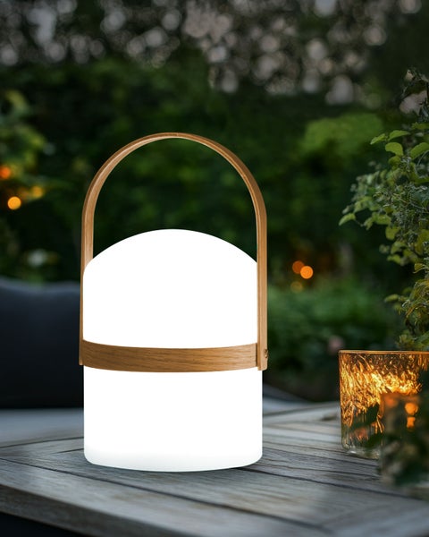 Dekorative RGB-Gartenleuchte mit Tragegriff. Diese LED-Lampe verfügt über einen robusten, wasserdichten Rahmen mit einem eleganten Holzgriff, der sowohl stilvoll als auch langlebig ist. Der wiederaufladbare Akku bietet 8 bis 12 Stunden ununterbrochenen Betrieb, so dass Sie die Lampe überall aufstellen können, ohne auf eine Steckdose angewiesen zu sein. Mit sechzehn wählbaren Farben und vier Lichteffekten können Sie die Beleuchtung leicht an jede Stimmung oder Gelegenheit anpassen. Ob Sie einen ruhigen Abend mit dem sanften Licht des Smooth-Modus genießen, etwas Energie mit dem Flash-Effekt hinzufügen, eine dynamische Atmosphäre mit dem Strobe-Effekt schaffen oder eine entspannte Stimmung mit dem Fade-Effekt erzeugen möchten, diese Lampe schafft die perfekte Atmosphäre, von entspannten Abenden bis hin zu lebhaften Partys im Outdoor-Bereich. Details: Typ LED-Tischlampe für den Außenbereich. Stil: Modern. Farbe: Weiß. Lichtfarbe: Blau. Material: Kunststoff. Material: Polypropylen. Zusätzliches Material: Pappelholz. Material Lampenfuss: Kunststoff. Material Lampenschirm: Kunststoff. Fassung: 0,6 W. Finish: Gefärbt. Schutzklasse: IP 54 (strahlwassergeschützt). Lichtstrom: 67. LED Typ: SMD 5050. LED: Ja. Spannung 100-240 V. Abmessungen: Kabellänge: 180 cm. Tiefe: 14 cm. Breite: 14 cm. Höhe: 25 cm. Gewicht: 0.5 kg. .Sie kaufen: 1 x LED-Tischlampe für den Außenbereich, 1 x Stromversorgung, 1 x Fernbedienung. Produktvorteile: Helligkeitsregulierung, Bringt Wärme in den Aussenbereich, Beständig gegen begrenztes Eindringen von Staub und Spritzwasser aus allen Richtungen (IP 54), Speziell für die Nutzung im Außenbereich entworfen, Praktische Fernbediensteuerung. Montage: Benötigt keine Montage. Pflegeanleitung: 1.Überprüfen Sie Kabel und Anschlüsse regelmäßig, um potenzielle Gefahren zu vermeiden. 2.Vermeiden Sie aggressive Chemikalien wie stark säurehaltige oder alkalische Reiniger, da diese Korrosion oder Kratzer verursachen und die Oberfläche der Leuchte beschädigen können. 3.Bringen Sie nicht fest installierte Außenleuchten bei starkem Unwetter ins Haus oder lagern Sie sie unter einem schützenden Dach, um Schäden zu vermeiden. 4.Reinigen Sie das Produkt regelmäßig, um seine Lebensdauer zu verlängern. Verwenden Sie ein trockenes oder leicht feuchtes Tuch bzw. einen Schwamm mit mildem Seifenwasser, um Schmutz und Ablagerungen von Gehäuse und Lichtabdeckung zu entfernen.