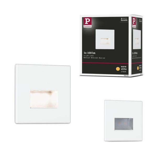 LED Wandeinbauleuchte Edge Quadro eckig 80x80mm 1,2W 50lm 230V 2700K Weiß matt