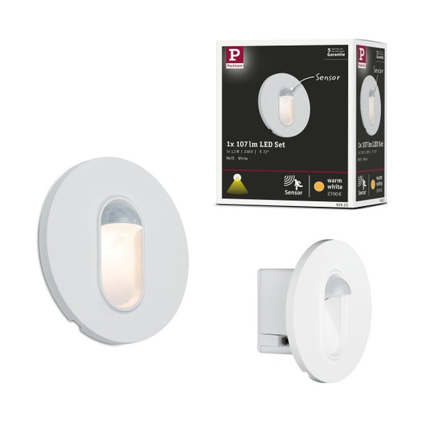 Licht muss nicht immer von der Decke kommen. Dieser runde Strahler ist speziell konzipiert für den Wandeinbau, setzt attraktive Lichteffekte und erhöht die Sicherheit in Fluren oder auf Treppen. Der integrierte Bewegungsmelder schaltet automatisch das Licht ein, sobald jemand sich nähert. Dank des Dämmerungssensors beginnen die Schaltzyklen erst, wenn es draußen dunkel wird. Die maximale Montagehöhe von 50 Zentimetern muss beachtet werden.