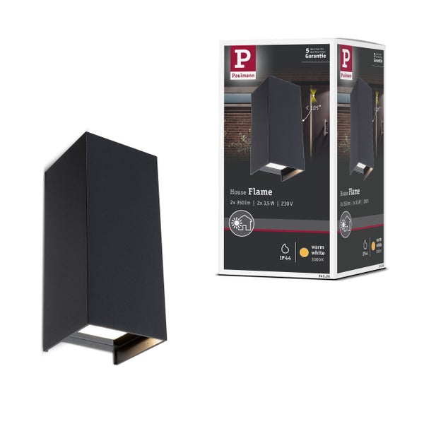 LED Wandleuchte Flame IP44 eckig 65x155 mm 3000K 2x2,8W 2x290lm 230V 105° Anthrazit Aluminium