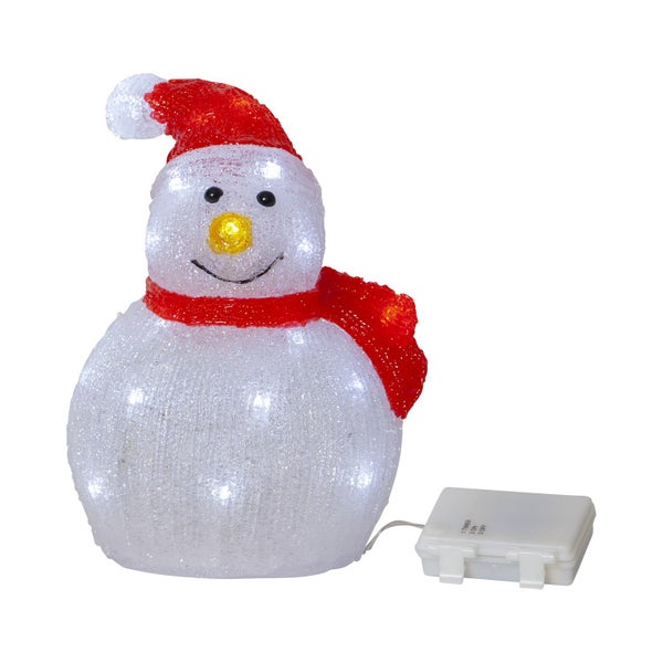 LED Weihnachtsleuchte ,Crystalo', Schneemann, Batterien + Timer, weiß-rot, kühles Licht, H 25cm