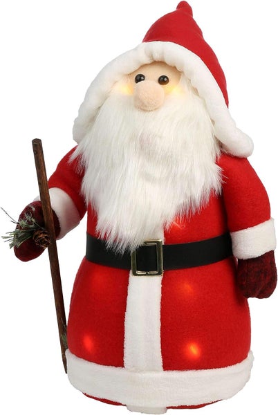 - Besteht aus beleuchtetem Weihnachtsmann mit Mantel, Zipfelmütze und Handschuhen aus Stoff in Rot und Weiß