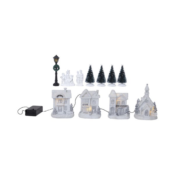 LED Weihnachtslichterkette ,Birmingham', Weihnachtsszenerie mit Häusern, Batterien + Timer, L 60cm