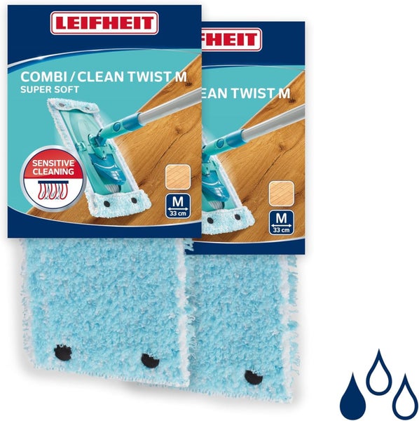Leifheit 2er Set Wischbezug CLEAN TWIST M super soft 33cm für sensible Böden, Ersatzbezug mit Spezialfasern, Wischer Ersatzbezug für minimale Wasseraufnahme, ideal für Parkett, Laminat und Kork