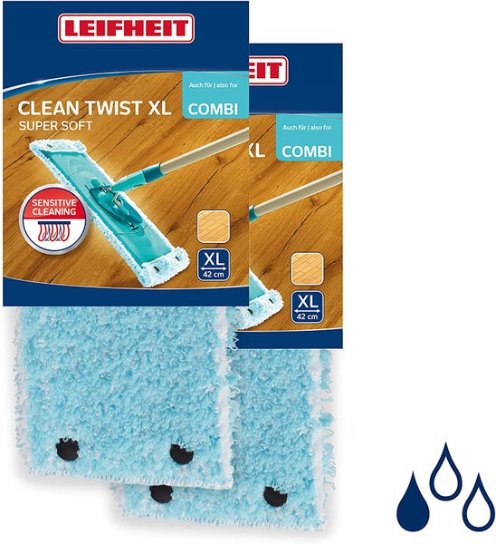 Leifheit 2er Set Wischbezug Clean Twist XL super soft 42 cm für sensible Böden, Ersatzbezug mit Spezialfasern, Wischer Ersatzbezug für minimale Wasseraufnahme, ideal für Parkett, Laminat und Kork