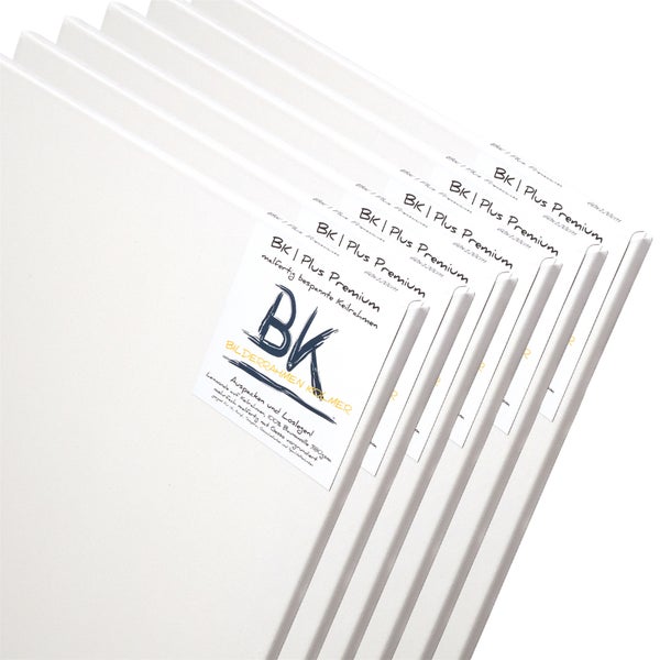 6 original B.K. PLUS Premiumleinwände auf Keilrahmen im Format 20x30 cm. B.K. PLUS Künstler Leinwände auf Keilrahmen sind speziell für den professionellen Einsatz entwickelt worden und genügt selbst den höchsten Ansprüchen. B.K. Plus Premiumleinwände verwenden eine 380g/m² schwere Leinwand aus 100% Baumwolle und werden malfertig, mit hochwertiger Gesso Grundierung geliefert. Die perfekte Leinwand für den professionellen Einsatz und anspruchsvolle Malerei Projekte.