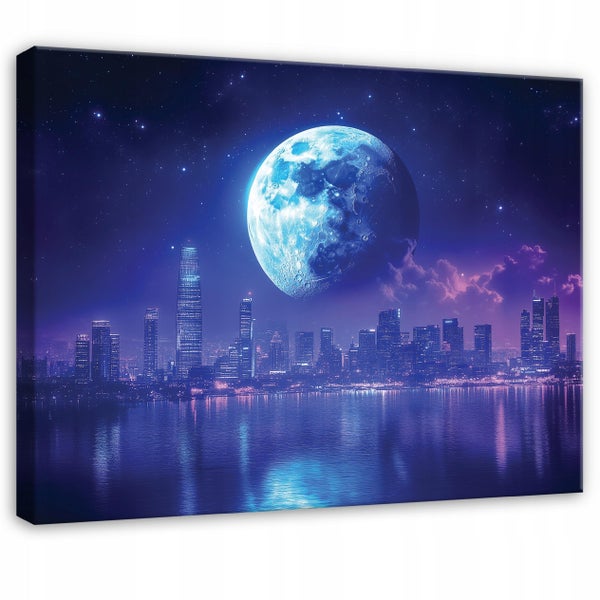Leinwandbild Stadt Mond Nacht PP16153O1 Wandbilder Wohnzimmer Schlafzimmer 100x70 cm - Modern Wanddeko