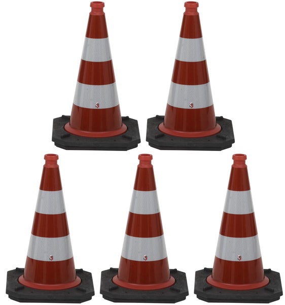 Leitkegel - Verkehrskegel, Pylonen gem. StVO VZ610 Voll Retroreflektierend 500 mm (5er Set) Reflexfolie Klasse RA2/B