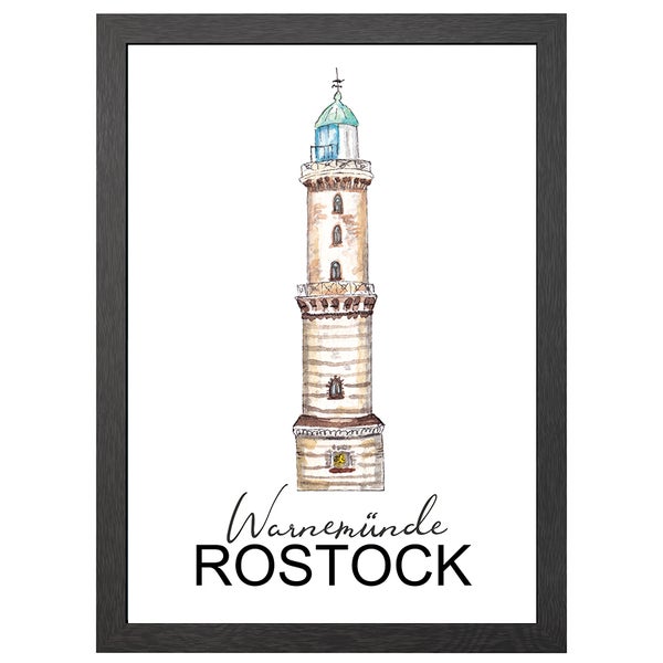 Leuchtturm Rostock Poster Im A2-Rahmen