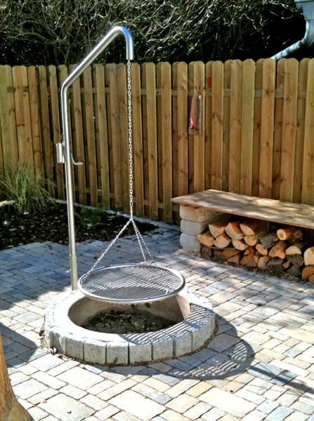 Angebot umfasst den Grillgalgen und das Bodenrohr, ohne Grillrost.