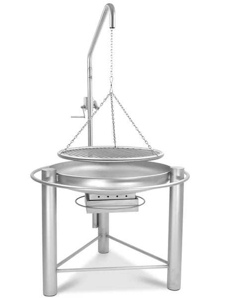 Schwenkgrill mit Feuerschale von 70 cm Durchmesser und 60 cm Grillrost komplett aus Edelstahl 1.4301