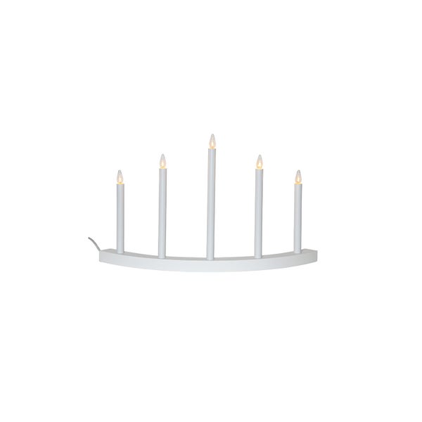- Der weiße Kerzenleuchter Accent hat eine elegante geschwungene Form und wird von fünf weißen, unterschiedlich hohen Kerzen abgerundet